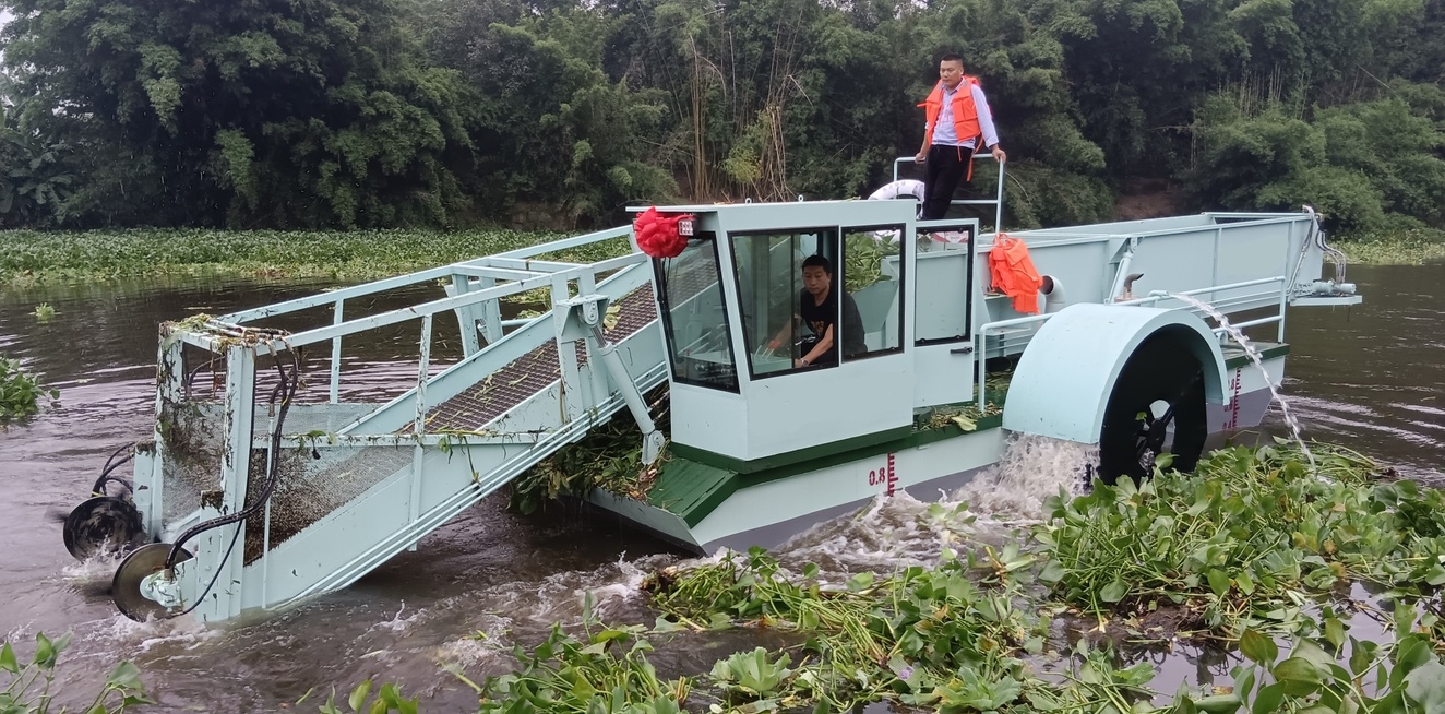 水草割收機(jī)亮相清水河